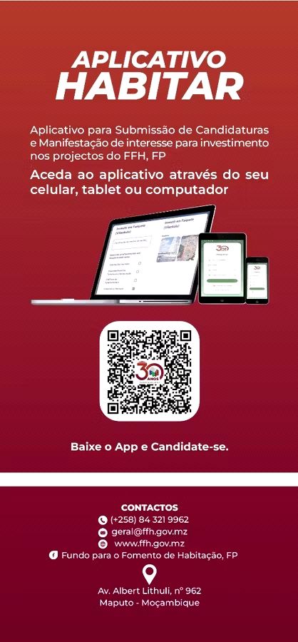 O Fundo de Fomento de Habitação (FFH), em parceria com o Fundo de Pensões (FP), anunciou esta sexta-feira o lançamento do Aplicativo HABITAR, uma plataforma digital que permite aos cidadãos candidatarem-se de forma mais simples, rápida e segura aos projectos habitacionais em todo o país.